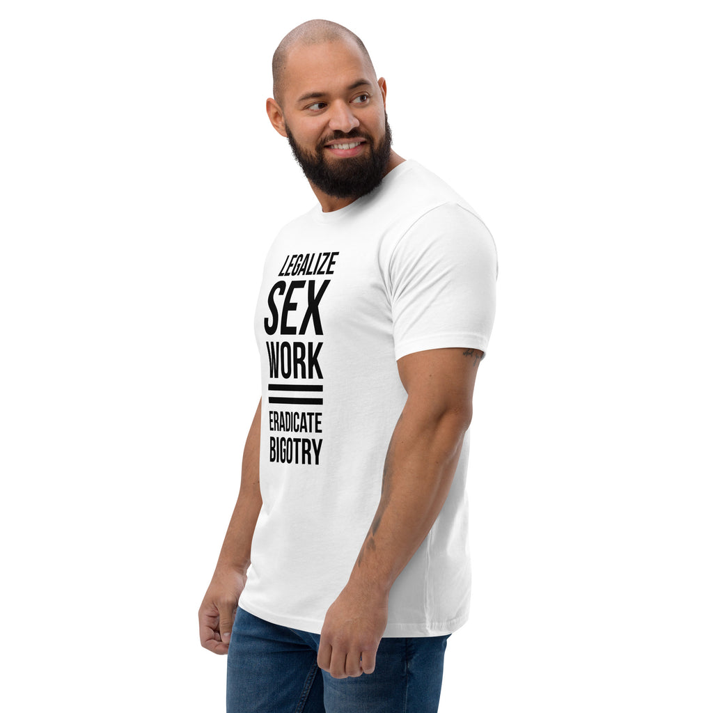 Ready to make history look this good? The Legalize Sex = Eradicate Bigotry fitted tee is here to hug your curves, flaunt your truth, and shout your politics without saying a word (okay, technically it says a lot—and we love that).